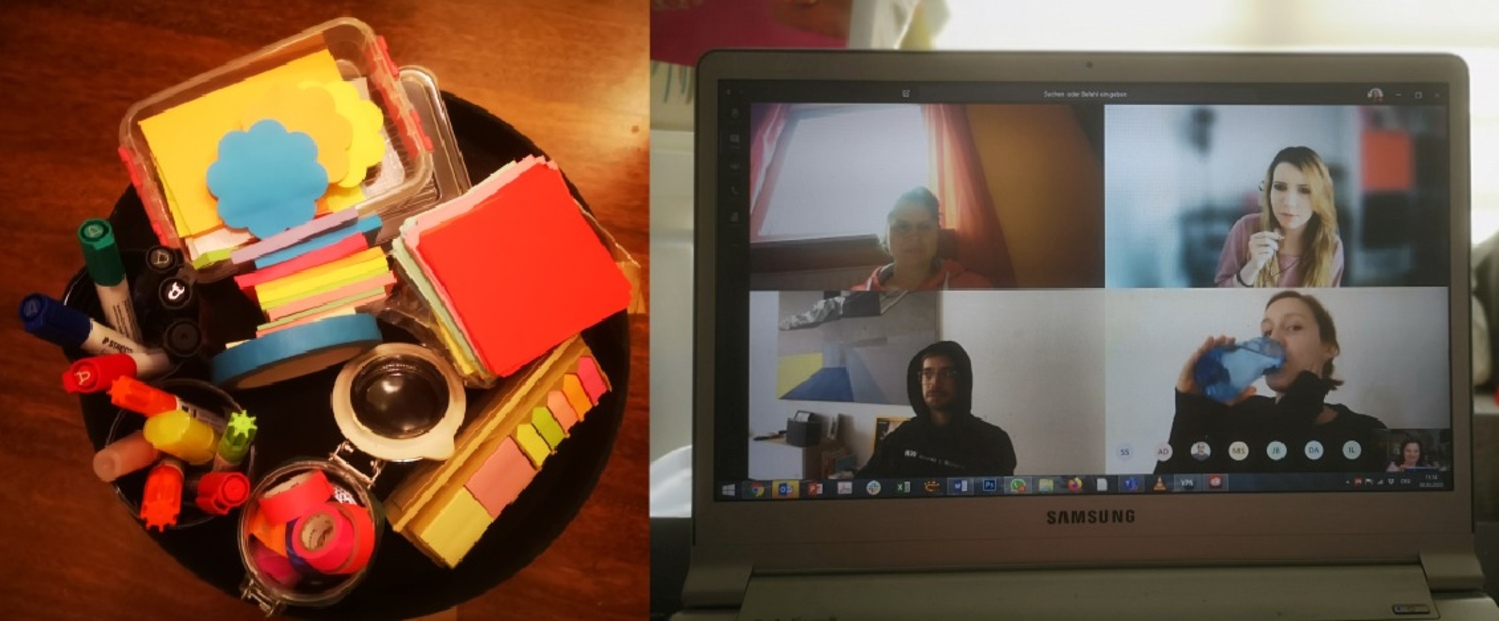 Was mir in den nächsten Wochen half, waren Schlaf, Spaziergänge in der Sonne und Natur, gesunde und vor allem leckere Dinge kochen, Alkohol, Struktur und Gespräche. Aber wenn man plötzlich von morgens bis abends den Tag mit Videotelefonaten verbringt, mochte ich abends nicht mehr reden, egal mit wem. Ich kann auch schlecht lange still sitzen, schon seit Kindheitstagen. Deshalb bin ich auch in Workshops und bei meinen Moderationen ein großer Fan, im Stehen zu arbeiten, den gesamten Raum zu nutzen. Bei den Videochats muss ich stundenlang sitzen oder zumindest an einem Ort verweilen. Vielleicht muss ich mir noch so einen Helm bauen mit Kamera, damit ich in Bewegung sein kann. Dann muss aber die Wohnung auch immer aufgeräumt sein…