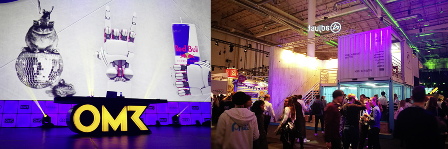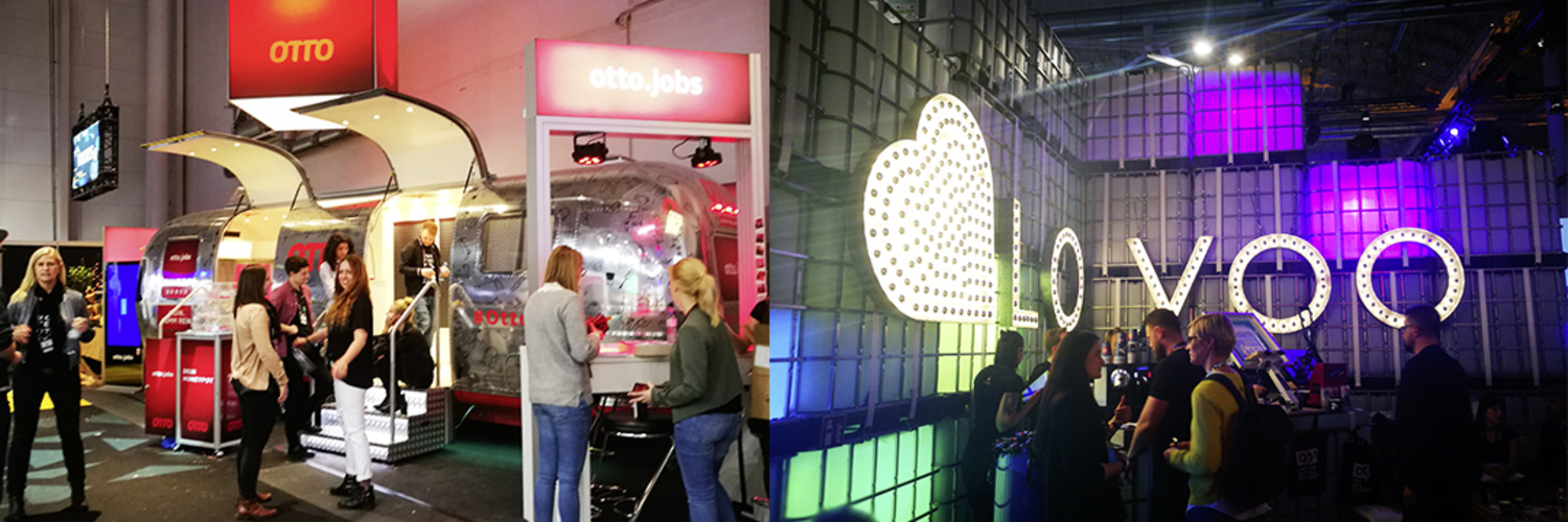 In der großen Messehalle waren die großen Marken vertreten, wie Facebook, Instagram, Otto, Stroer aber auch erfolgreiche Start-ups wie adjust mit tollen Premiumständen.