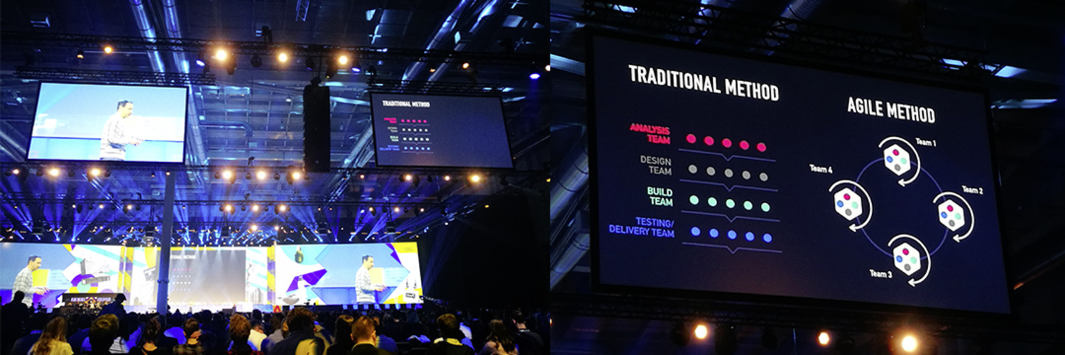 Was auffällt – von der Online-Anmeldung über die Assets, wie Armband mit Chip, Konferenzausweis, Beschilderung bis hin zur gesamten Konferenzausstattung und Motion-Design – ist das konsequente Konzept und Design. Farbig, kraftvoll – aber nicht Kindergartenbunt. Innovativ und zugleich emotional, provozierend und witzig. Das muss man erstmal schaffen…